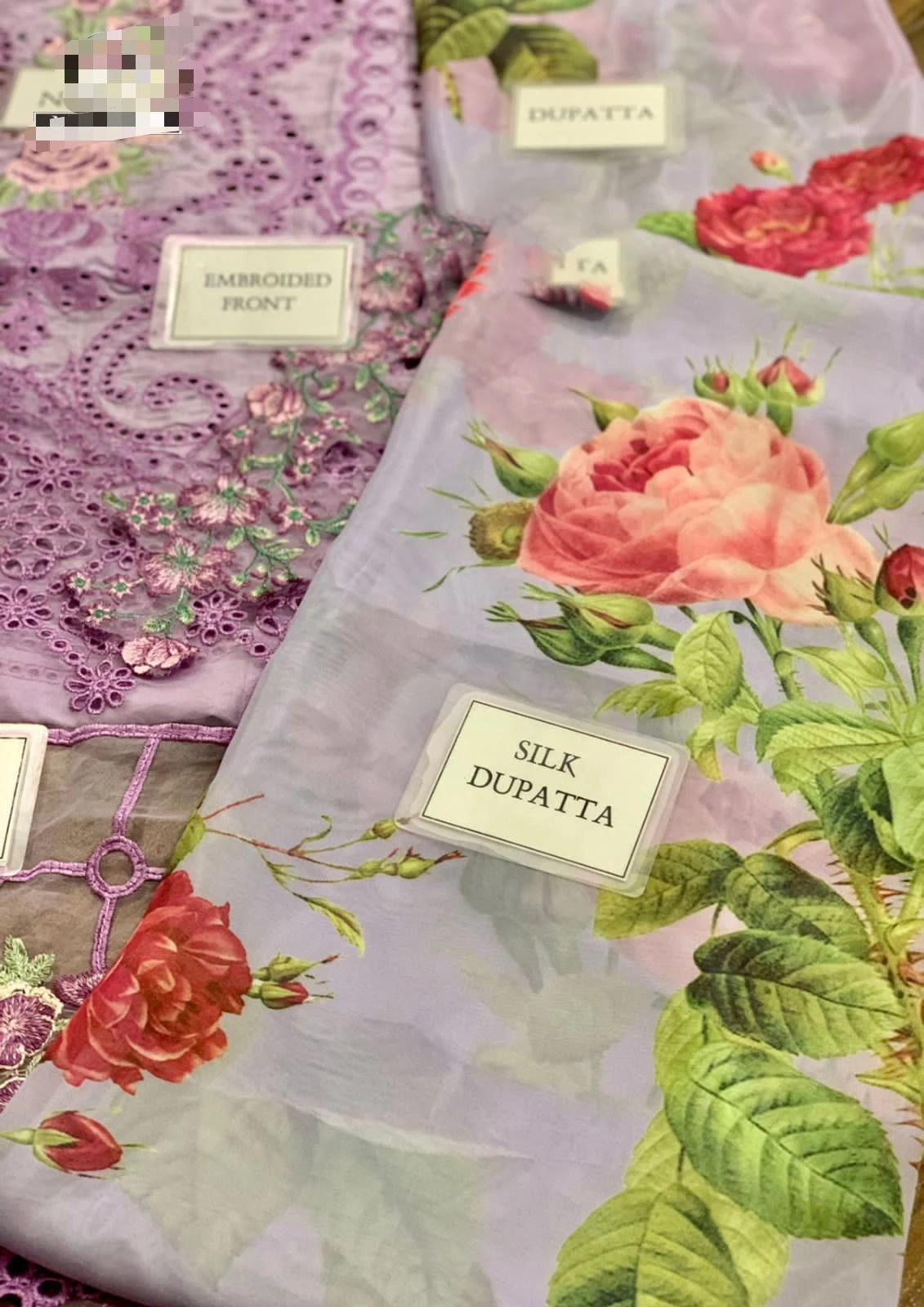 lawn fully heavy embroidered scifflie & multi threat centre panel front with heavy embroidered scifflie left and right panel attach with heavy embroidered scifflie .