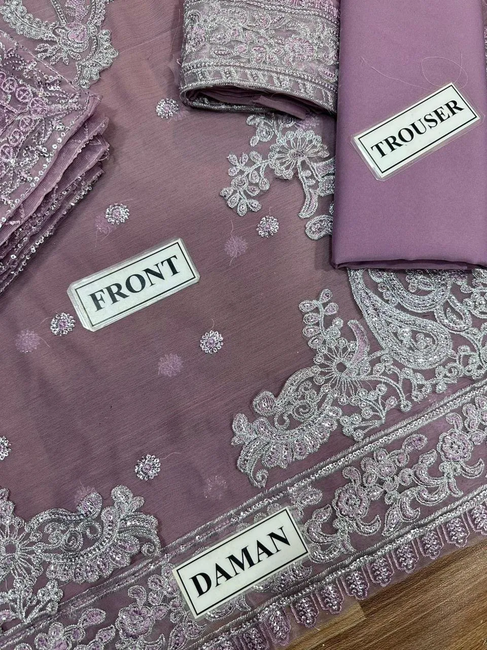 • Front: Fully embroidered spangle work chiffon