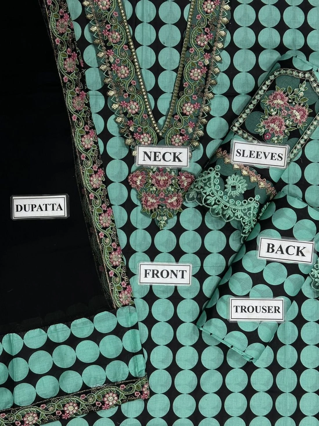 look at this Charizma lawn suit, the first thing you notice that is that perfect balance between “fun” and “fancy.” It’s a three-piece unstitched outfit that looks very gorgeous with embroidery.