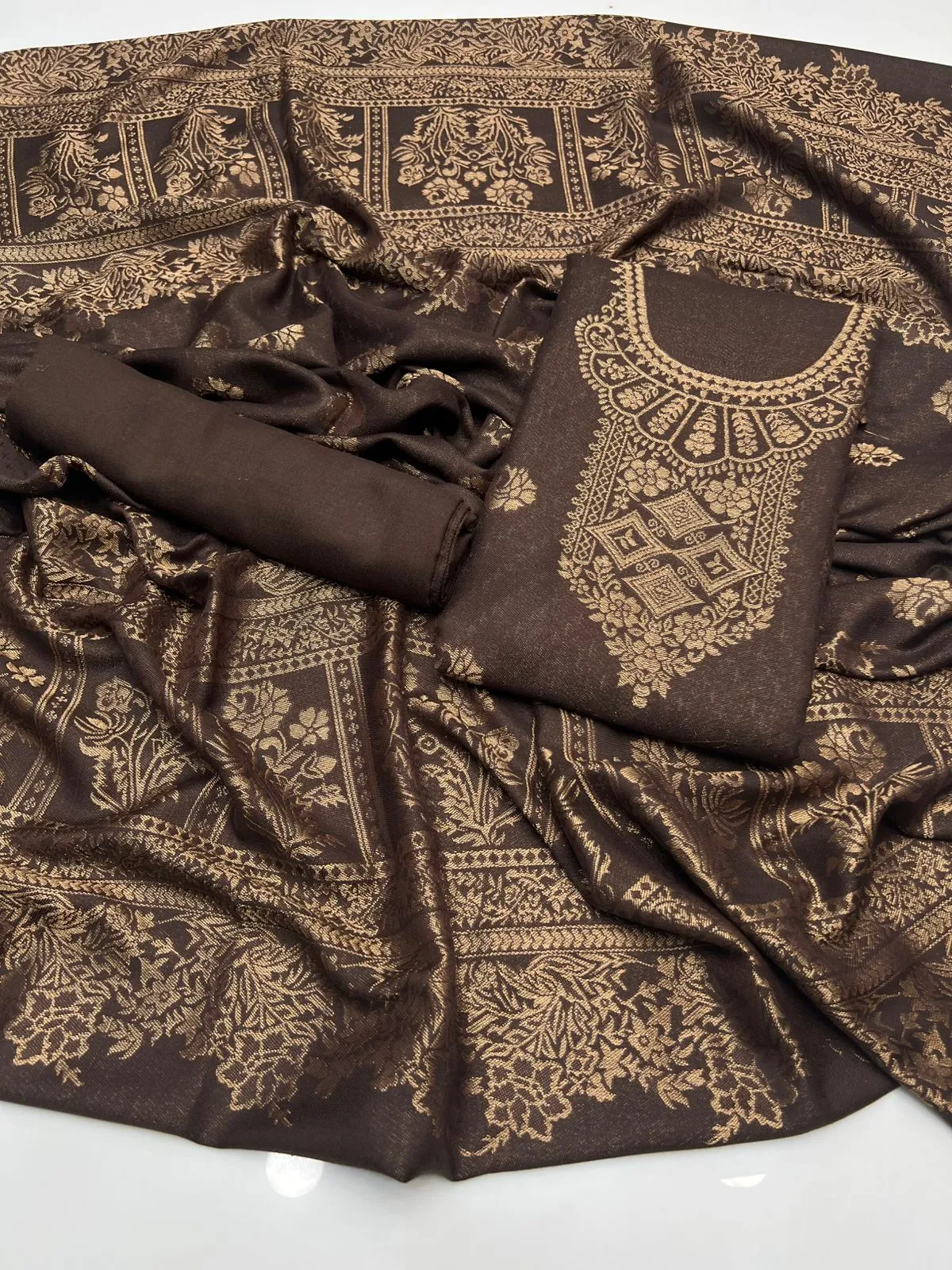 Clerak Fabric Heavy Brosha Embroidered 3PC Winter Suit with Dupatta
