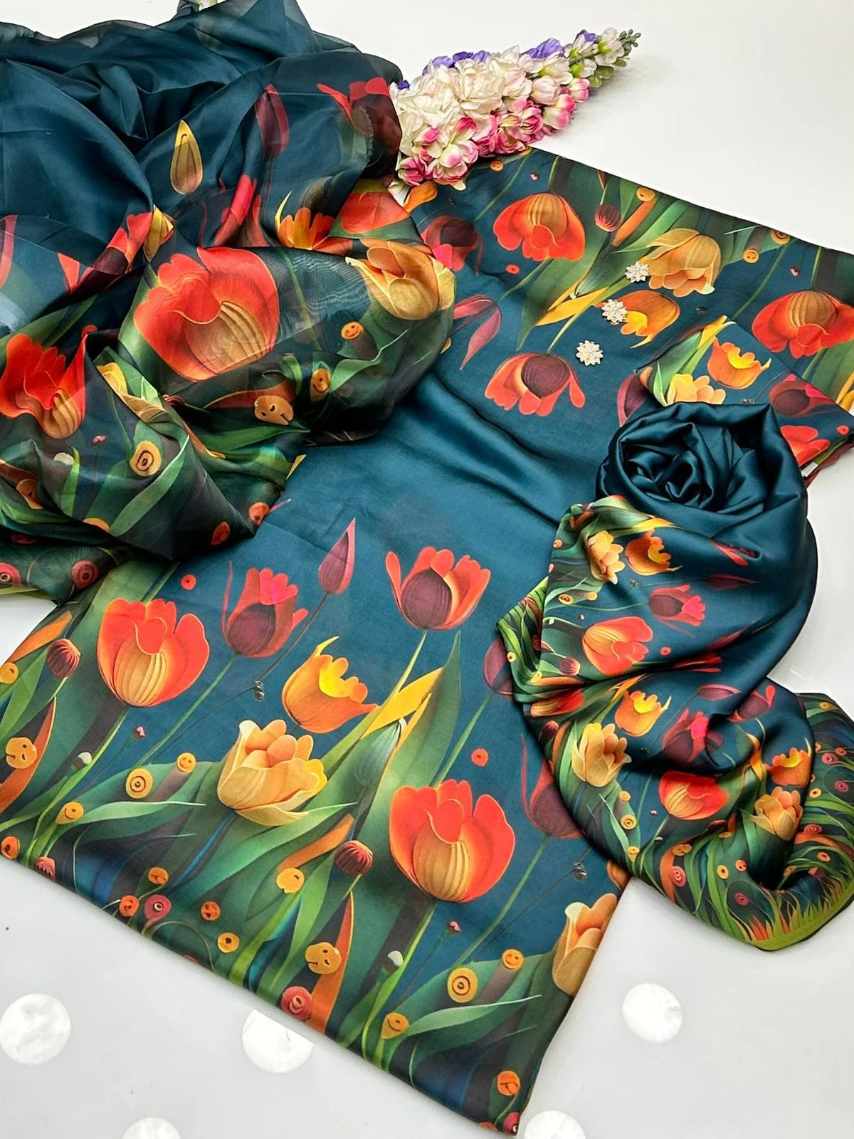 - Premium chiffon fabric with a luxury finish